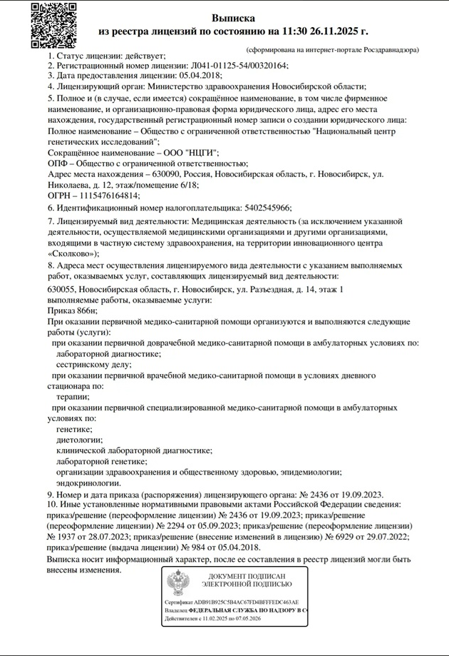 Точность ДНК-теста, который вы можете приобрести в нашем центре «ДТЛ» в Бору, крайне высока и достигает 99,99999%, благодаря использованию передовых методов анализа и диагностического оборудования в ДНК-лабораторий-партнёров.